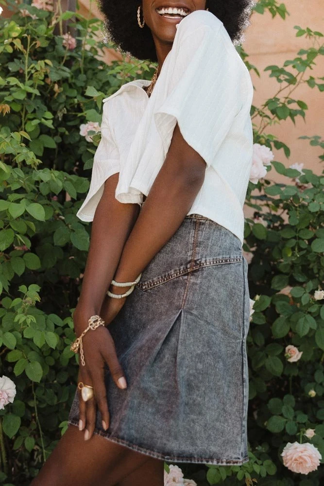 - Pleated Denim Skirt