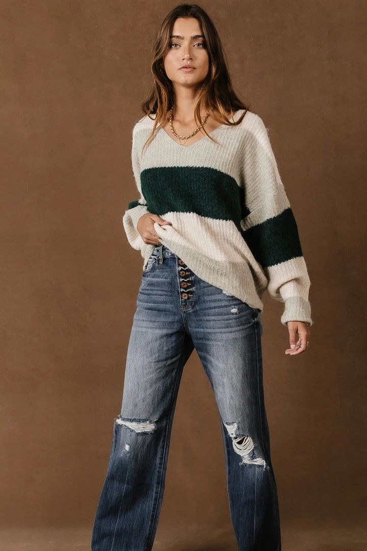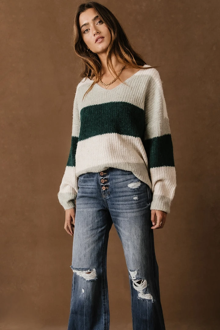 - V-Neck Striped Sweater